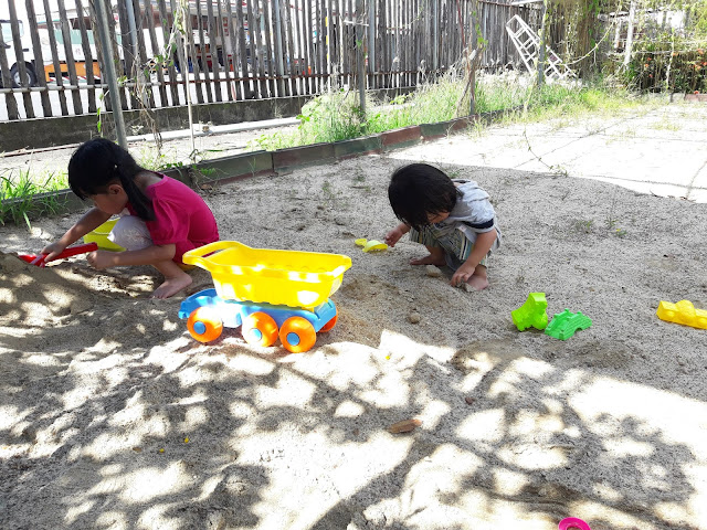 有樹蔭 所以在旁邊陪伴的大人也都很悠哉 不用撐傘
