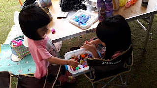讓兩個小寶貝進去帳篷陪老爸