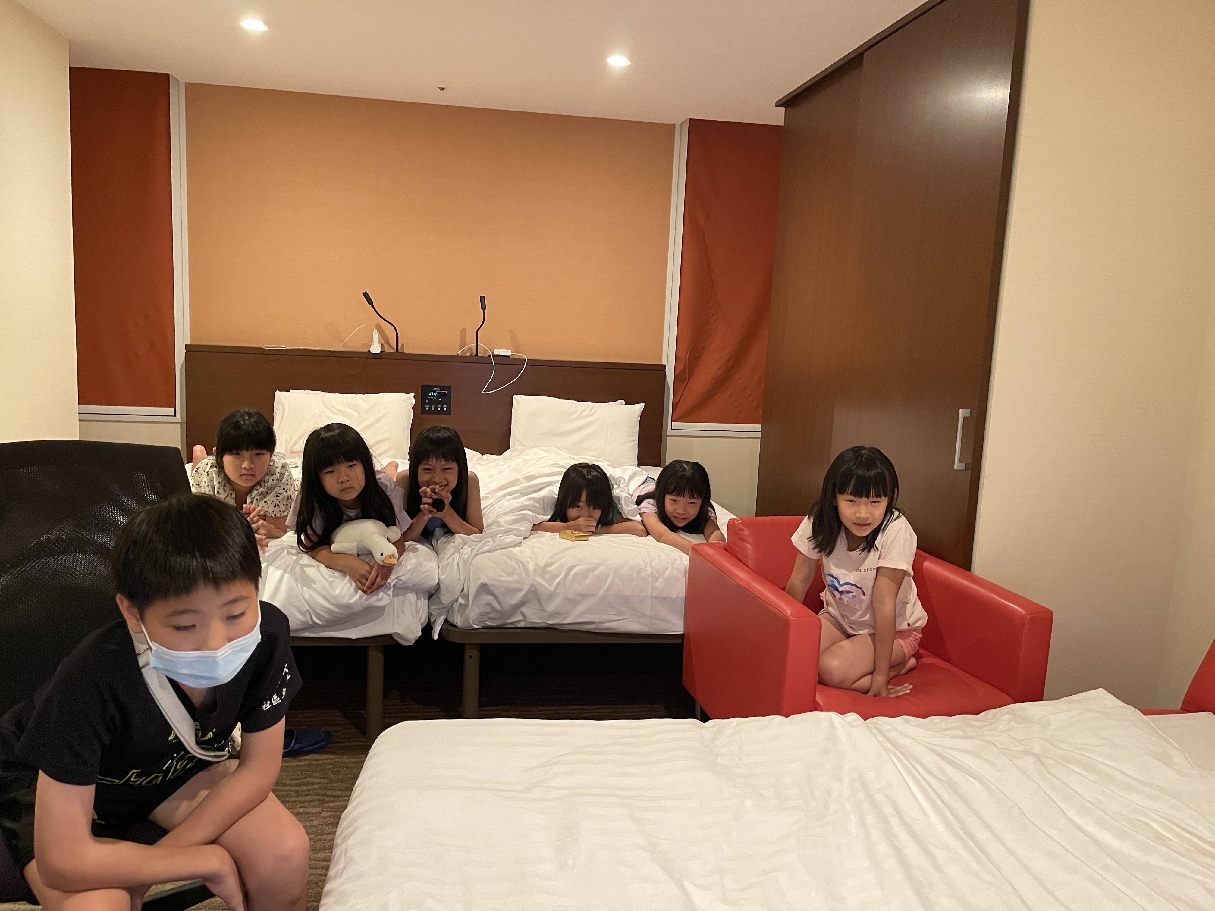 晚上我們在回飯店的路上,逛一個超大的超市,媽媽們快去快炒的採買了各式各樣的熟食,準備回飯店大快朵頤,小孩們晚上擠在可庭房間,又看了一部宮崎駿的電影